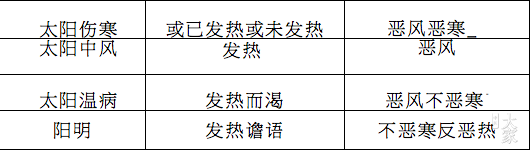 - 阅者试察上表,其中层次何等分明。太阳伤寒当“或未发热” “恶寒”之时,完全为寒象,且不但曰“恶风”,兼曰“恶寒”,显见其恶风寒之重。至太阳中风,即但曰“发热”,显无“或未发热”之时,且但曰“恶风”,不兼曰“恶寒”,显见其恶风寒之轻。至太阳温病,不但曰“发热”,且加“渴”以示其津液之伤,曰“恶风”,又曰“不恶寒”,显见其恶风寒之微。至阳明,其甚者曰“谵语”,以示其津竭之后,神经且受热灼矣。又曰“反恶热”,至此完全为热象,与太阳伤寒之完全为寒象者适相反。由是吾人可得外感疾病传变之第一原则,曰“由寒化热”是也。此原则实为吾人依经探讨之收获,而温病之不得称为阳明病,又其余事也矣!